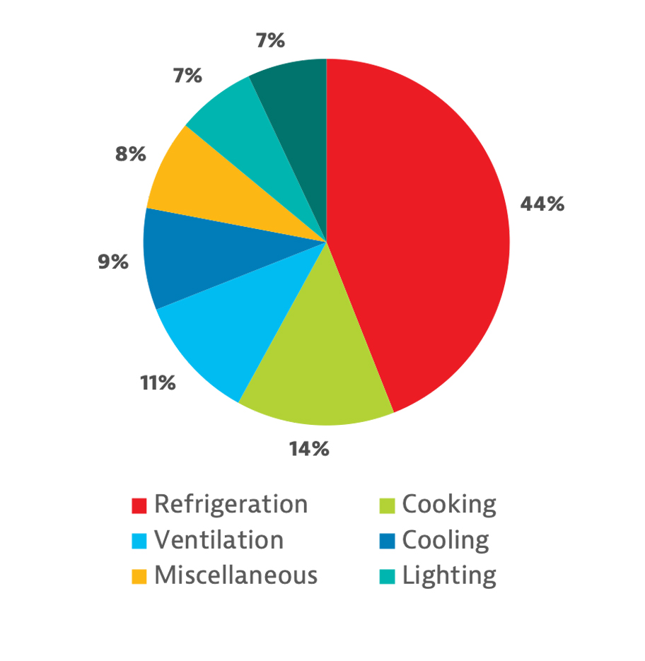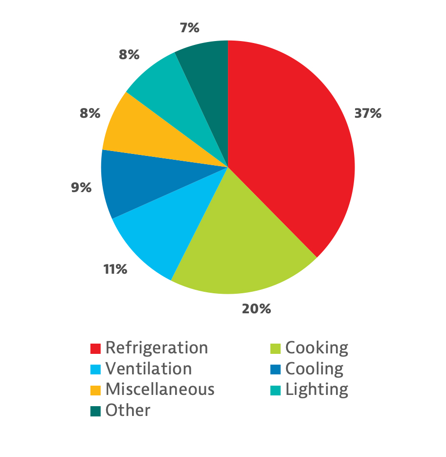 Contact UsThe chart shown here breaks down typical energy usage in restaurants by equipment type. Use this average as a "measuring stick" to help you better understand and gauge the quality of your own restaurant's energy spending.