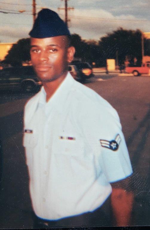 U.S. Air Force Airman 1st Class Leray Smedley poses for a photo after graduating Basic Military Training, Nov. 13, 2001, at Joint Base San Antonio, Texas. Smedley earned the Honor Graduate Ribbon during his time in BMT, a distinction awarded to only the top 10% of each training flight. (U.S. Air Force courtesy photo)