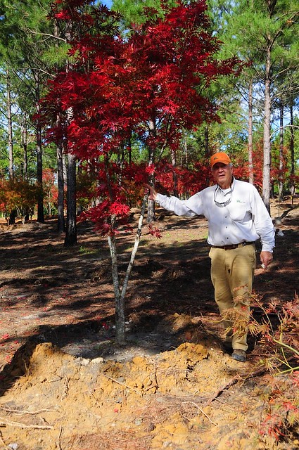 Auburn’s famed football coach Pat Dye is shown with one of the Japanese maples he planted throughout Crooked Oaks. (contributed)