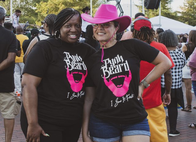 Pynk Beard fans Canderia Peterson, left, and Khristina Charley, enjoy themselves at the 15th anniversary celebration of Railroad Park. (Marika N. Johnson / The Birmingham Times)