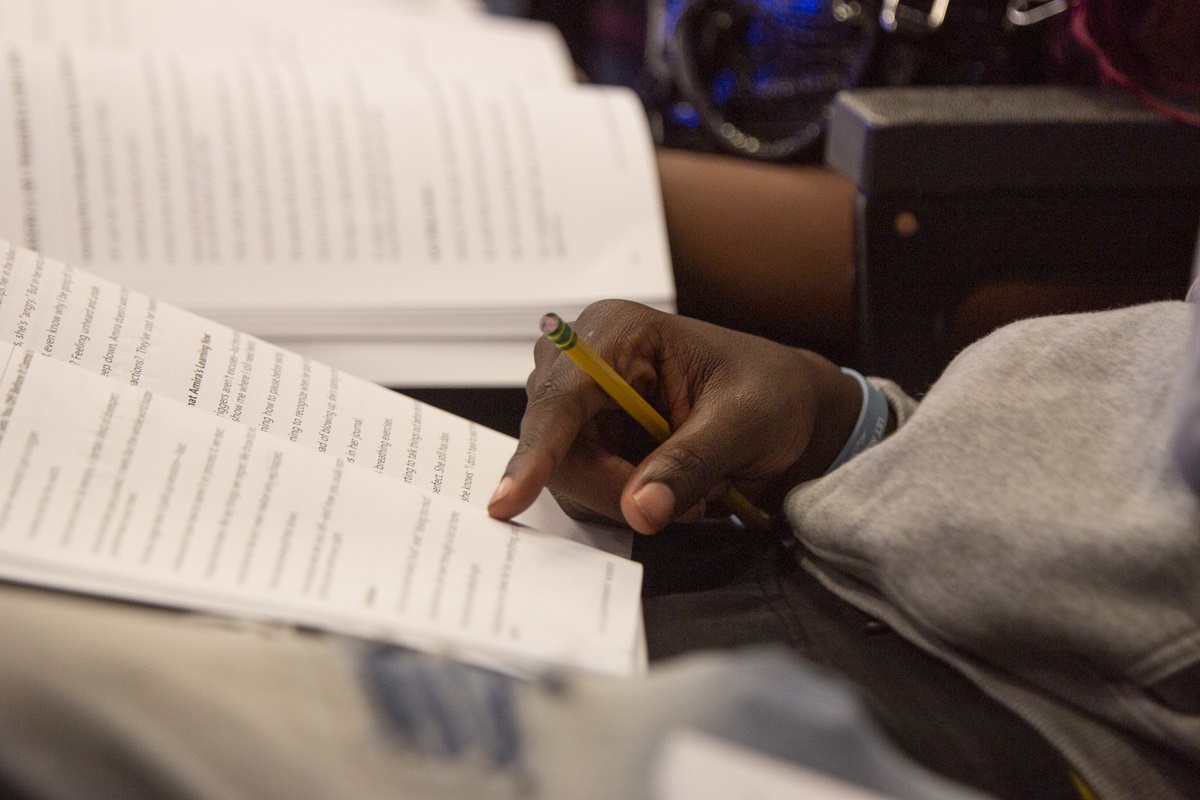 Students at the Safe Summer Series program at Miles College go over lessons in the Empowerment Workbook. (Marika N. Johnson / The Birmingham Times)