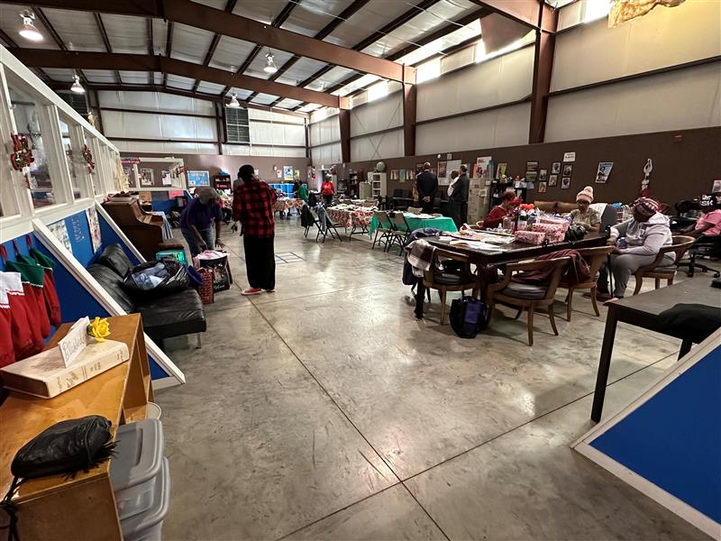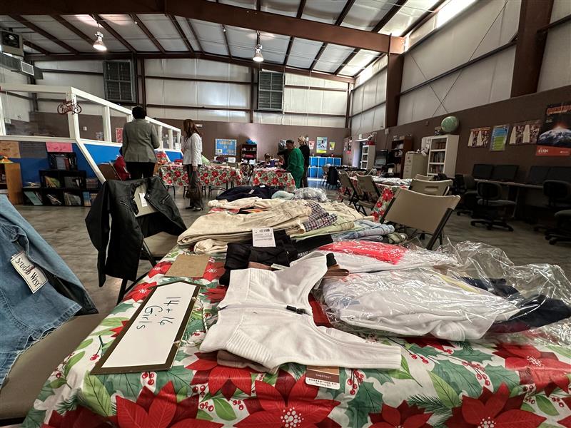 Volunteers set up a Christmas market for local youth. (Joey Blackwell / Alabama News Center)