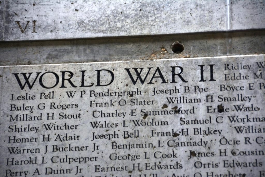 The names of Alabamians who died in U.S. wars and conflicts cover the walls in the Hall of Honor at the Alabama Veterans Memorial Park. (Karim Shamsi-Basha / Alabama News Center)
