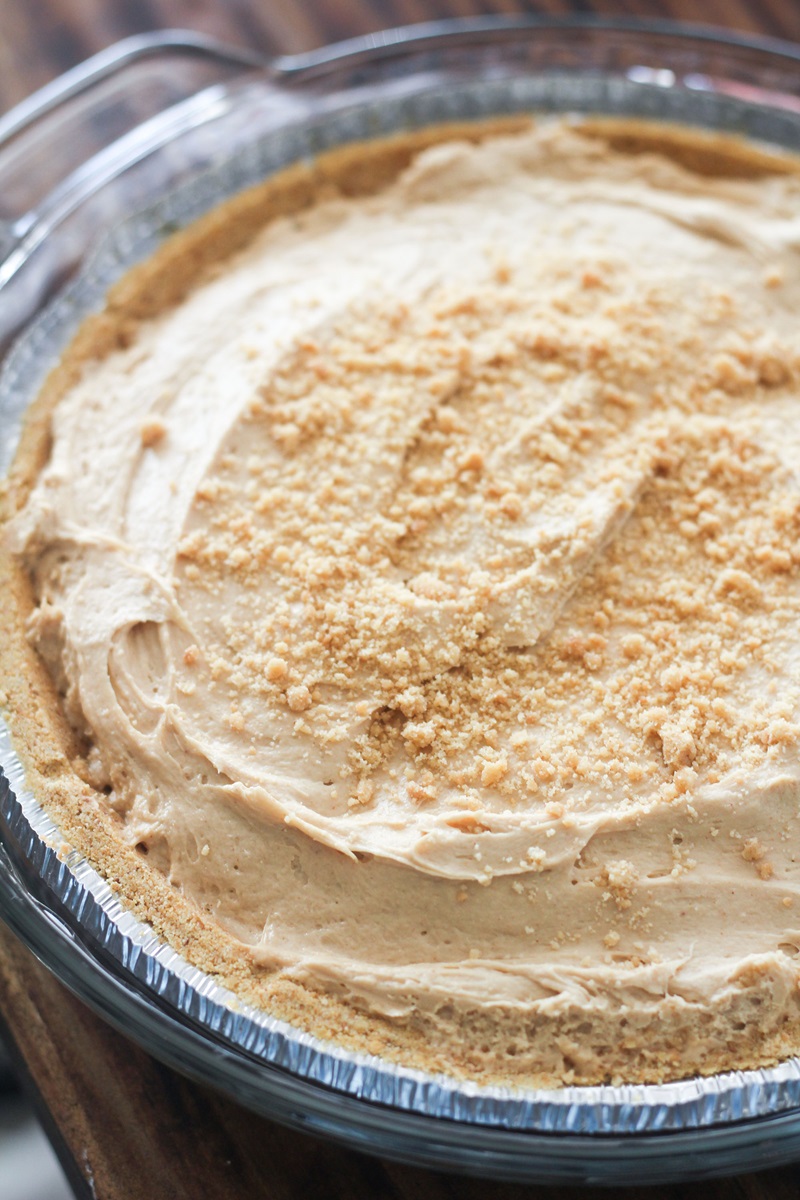 Beat cream cheese until fluffy. Add peanut butter and sweetener. Fold in whipped topping. Spoon into pie crust and chill until set. Garnish with dollop of whipped topping. Sprinkle with graham cracker crumbs.
