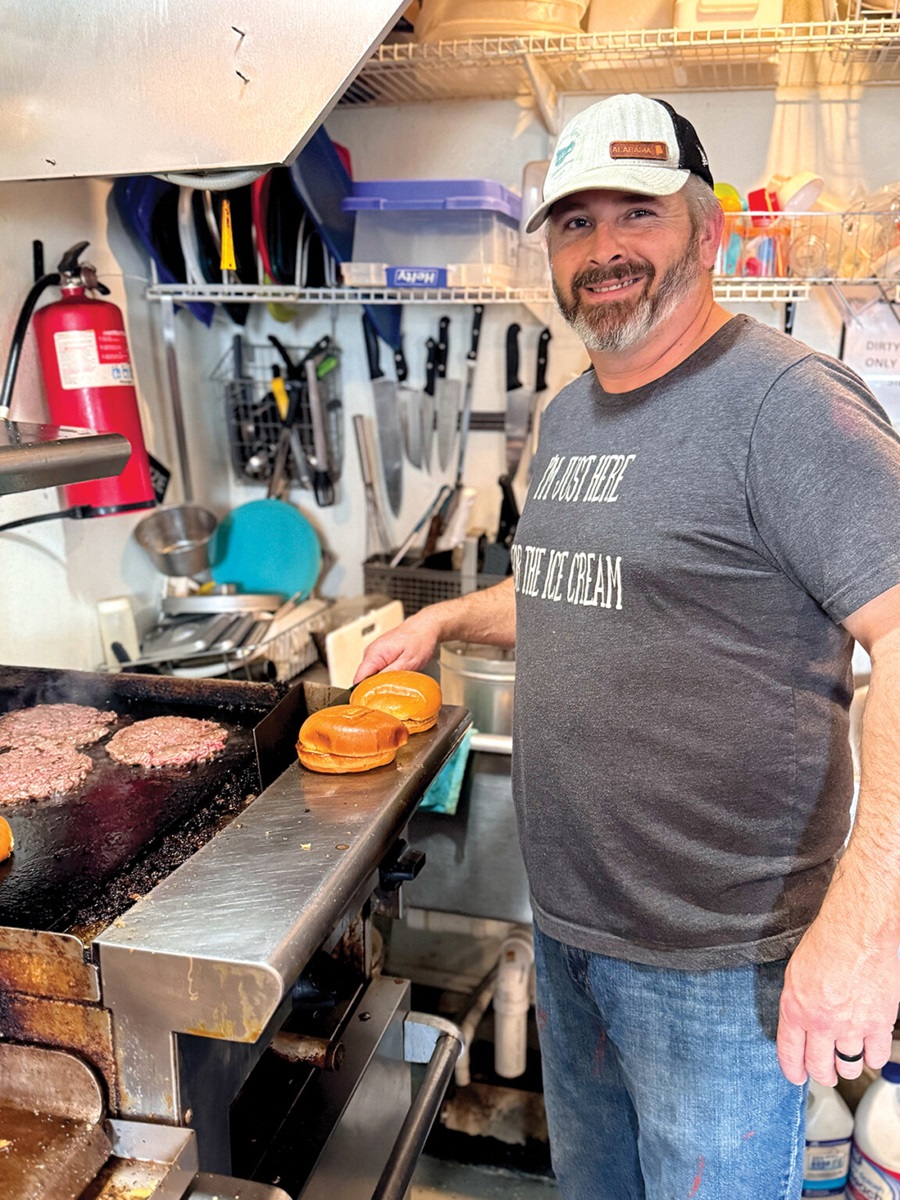 Reeves was concerned he’d soon shut the doors again, but despite COVID, people popped in for the store’s local products like sorghum cane molasses, jams and in-shell pecans, plus grocery items and other necessities that saved them a trip to Atalla or Oneonta. The bounty piled up and the produce porch Reeves added to the building also drew customers. The space stays packed with cut flowers in spring and summer, pumpkins and gourds in fall and seasonal fresh fruits and veggies from area farmers as well as tomatoes, okra, squash and cucumbers from Reeves’ own garden.