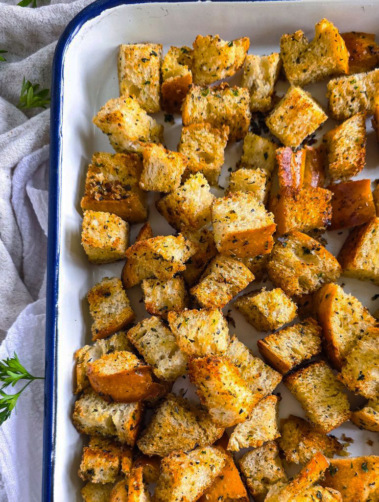 - Cheesy croutons: Add grated Parmesan before baking for extra flavor.