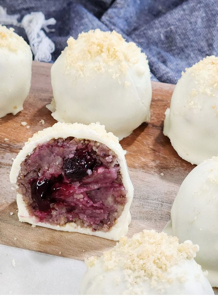 These little truffles contain the perfect blend of sugar cookies and blueberries rolled up into balls of yummy goodness. It’s the perfect recipe for the holiday season and great to try when you have leftover sugar cookies.