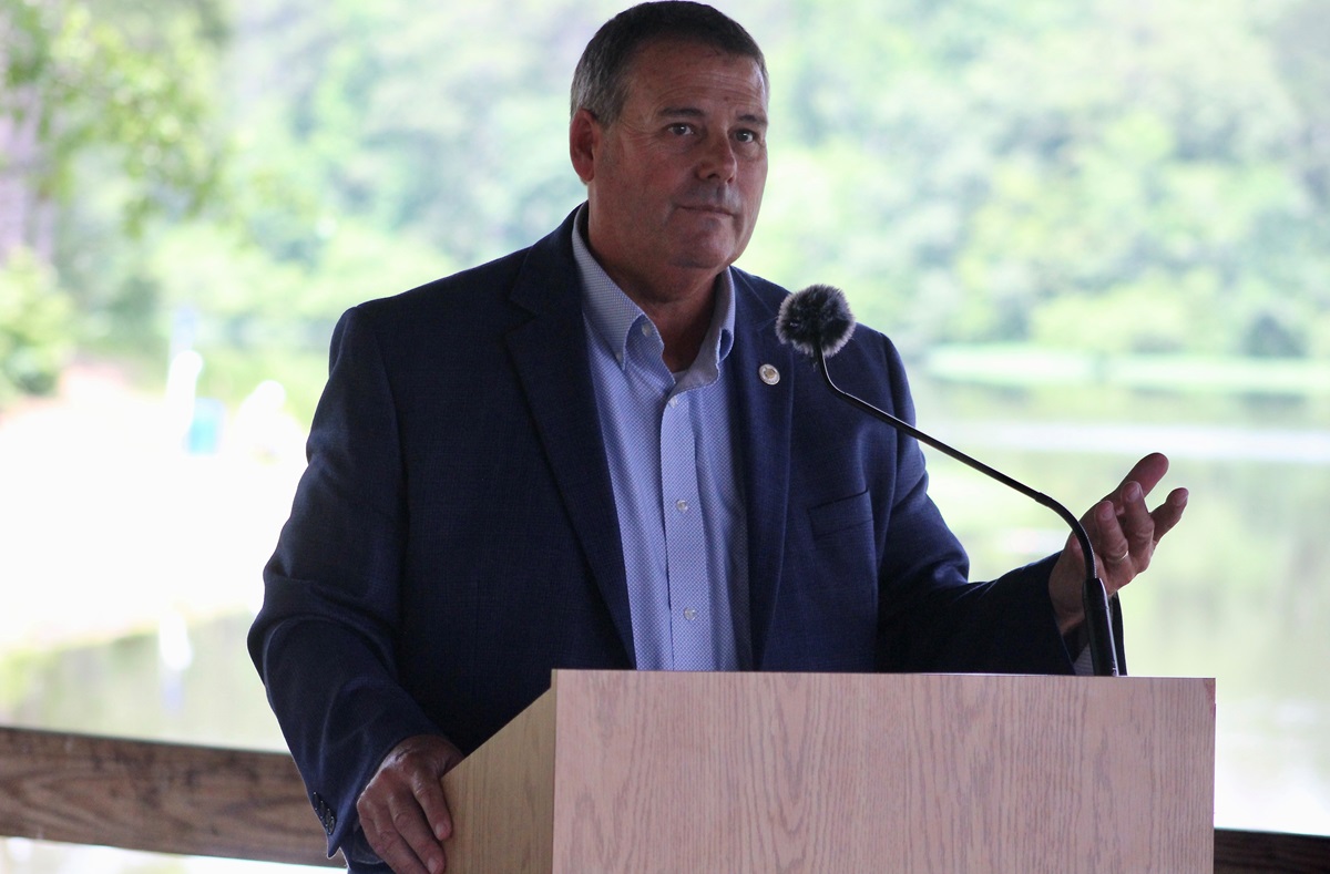 Chris Blankenship, commissioner of the Alabama Department of Conservation and Natural Resources, speaks during a news conference to announce renovations and improvements at Walker County Public Lake. (Alabama Department of Conservation and Natural Resources)