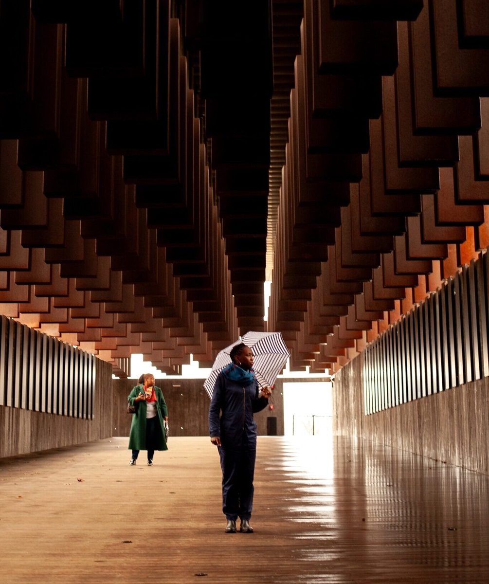Once visitors exit the museum, they are invited to take the museum shuttle to The National Memorial for Peace and Justice, the country’s first comprehensive memorial dedicated to the more than 4,400 victims of racial terror lynchings. Their names are engraved on 800 suspended steel columns, each representing a county where lynchings took place. The memorial is not meant to comfort, but rather to confront — to face the grief in broad daylight and to wrestle with those emotions.