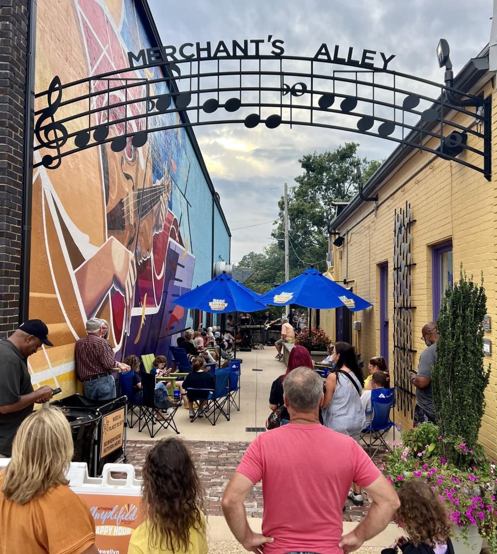 Every Friday night from May through June, live music fills the air in the Merchant’s Alley district on Jefferson Street in Athens. (Athens Main Street)
