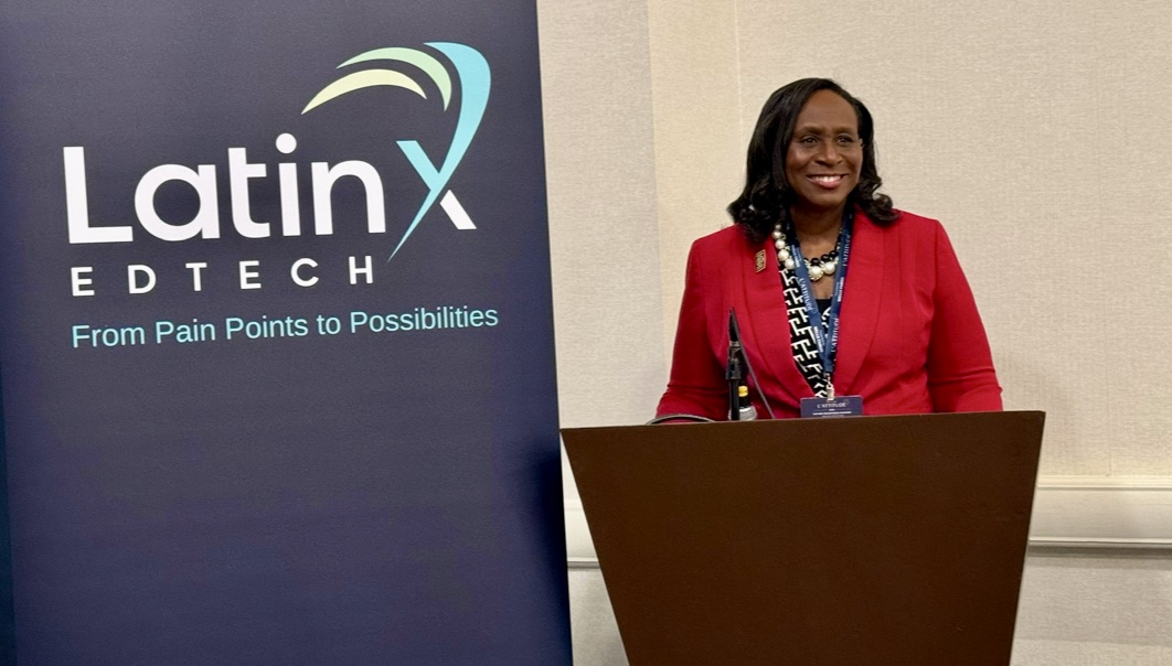 Dr. Valenia Belle speaking in 2024 at the Latin X EdTech conference in California. (Contributed)