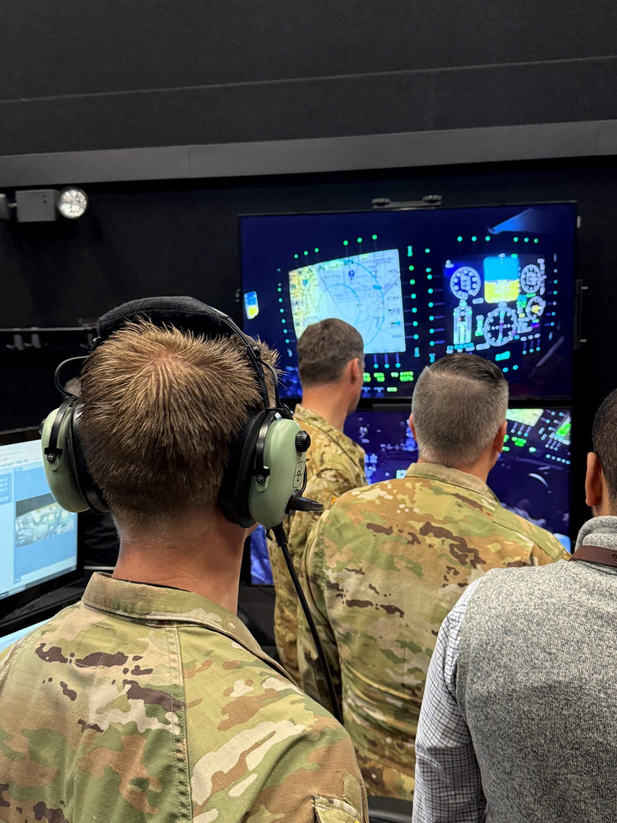 Army aviators collaborate with the Future Long-Range Assault Aircraft (FLRAA) team and industry partners during a simulated test run in the Black Hawk Air Crew Trainer. The exercise provided crucial feedback to refine the FLRAA’s design for real-world combat scenarios. (Morgan Pattillo)