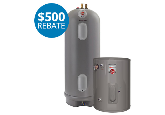 Looking for a lifetime warranty or a special size tank? Prefer a specific name brand? We’ll give you $500 back on the electric water heater of your choice over 30 gallons. Tankless water heaters do not qualify.